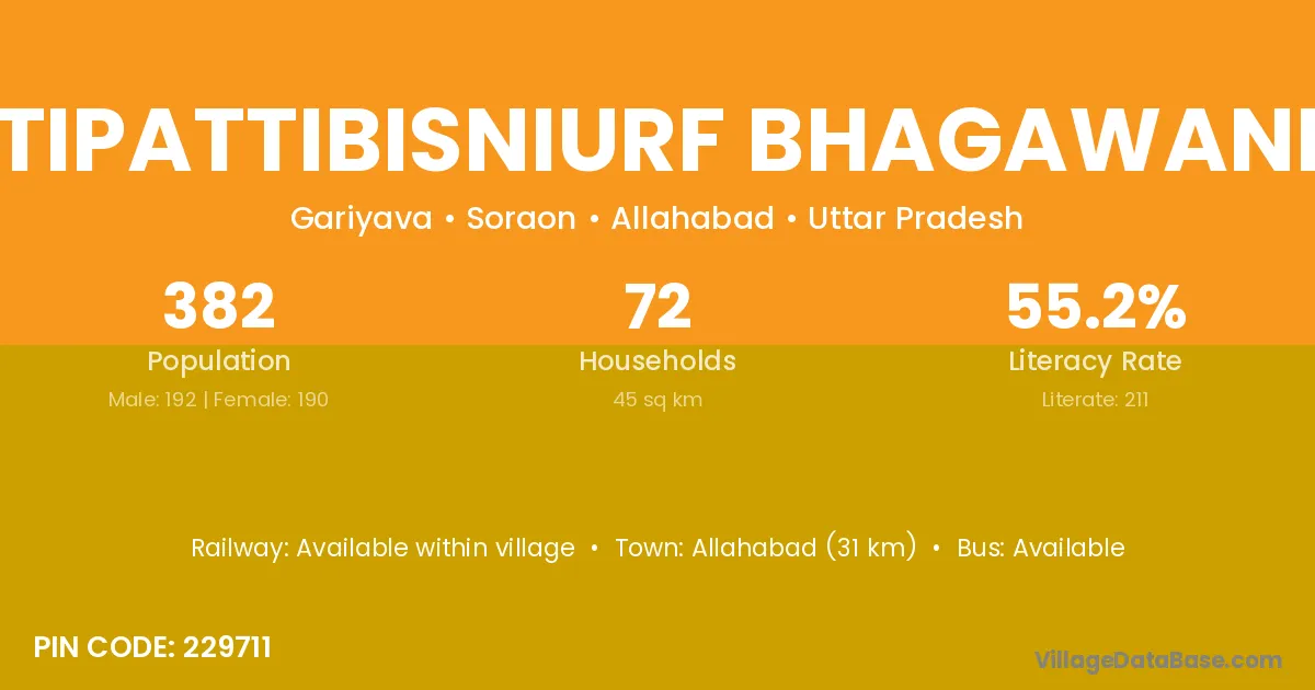 Bhitipattibisniurf Bhagawanpur village has a total population of 382 people, of which 192 are males and 190 are females.