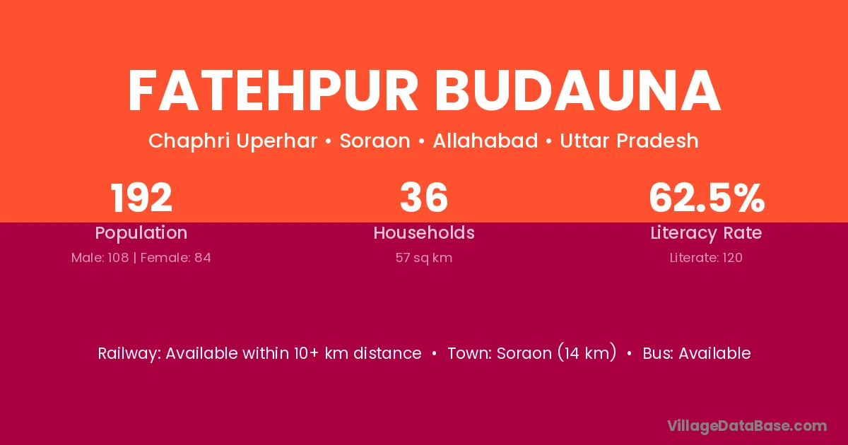 Soraon (14 km) is the nearest town to Fatehpur Budauna village for major economic activities and is located approximately 14 km away.