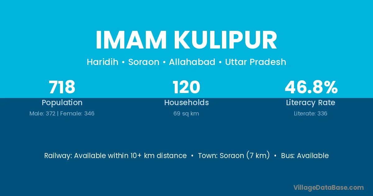 Soraon (7 km) is the nearest town to Imam Kulipur village for major economic activities and is located approximately 7 km away.