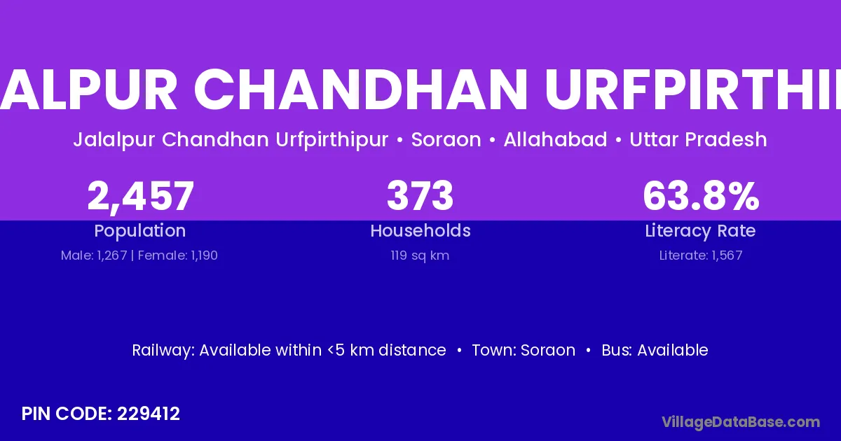 According to Census 2011 information, the village code of Jalalpur Chandhan Urfpirthipur village is 229412.