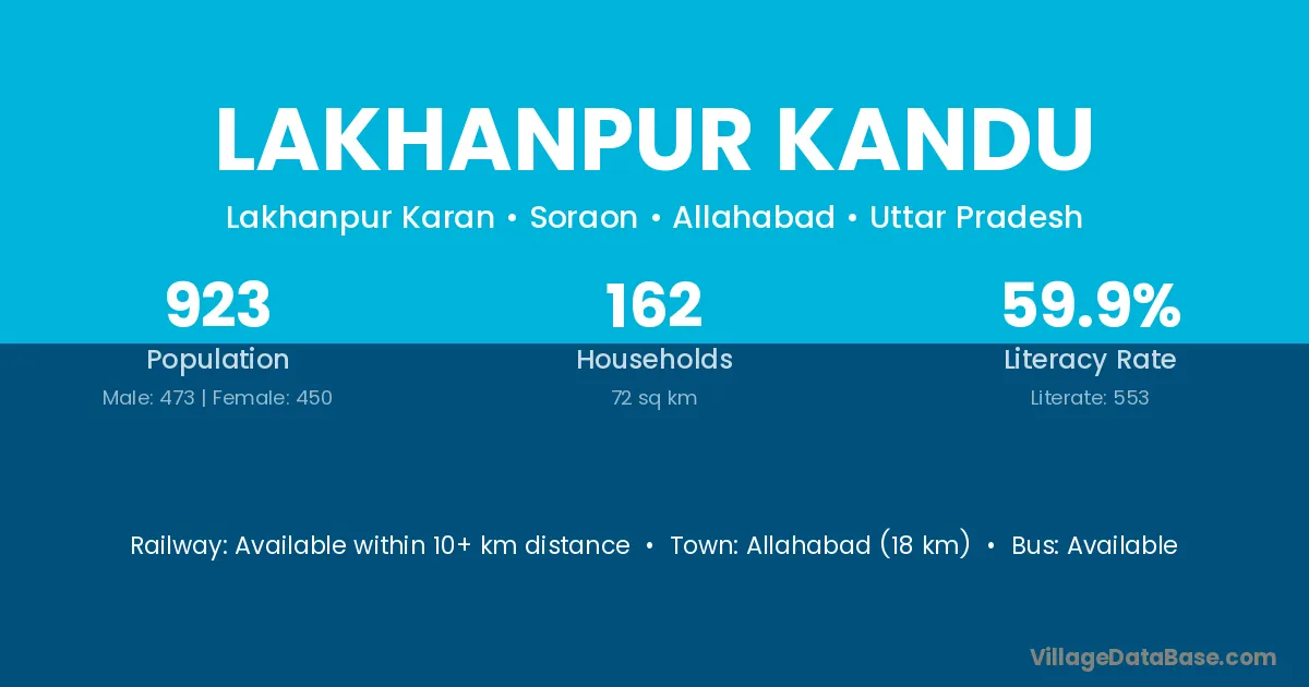 Allahabad (18 km) is the nearest town to Lakhanpur Kandu village for major economic activities and is located approximately 18 km away.