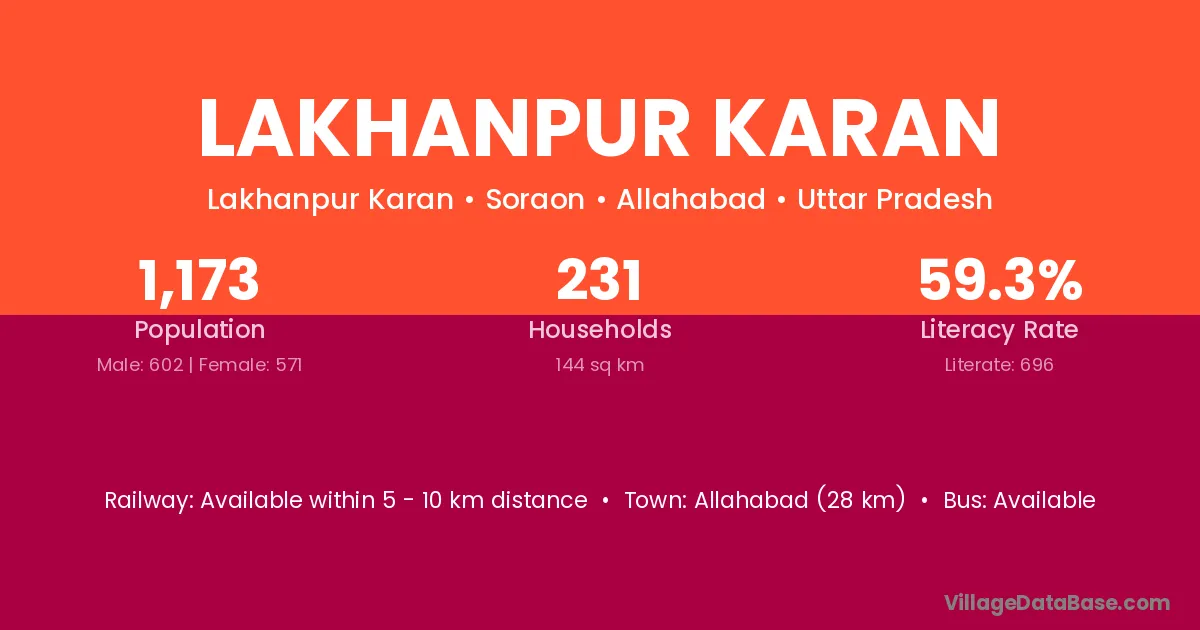 Allahabad (28 km) is the nearest town to Lakhanpur Karan village for major economic activities and is located approximately 28 km away.