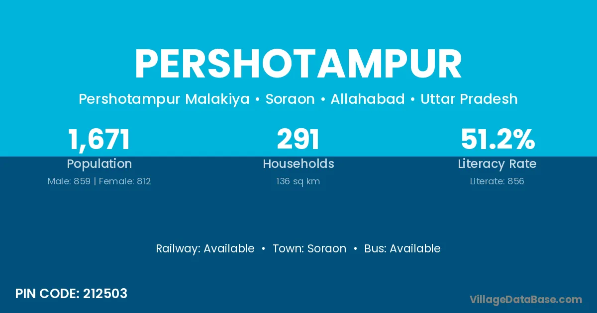 Soraon is the nearest town to Pershotampur village for major economic activities