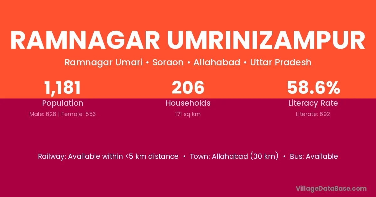 Allahabad (30 km) is the nearest town to Ramnagar Umrinizampur village for major economic activities and is located approximately 30 km away.