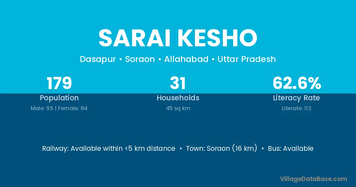 Soraon (16 km) is the nearest town to Sarai Kesho village for major economic activities and is located approximately 16 km away.
