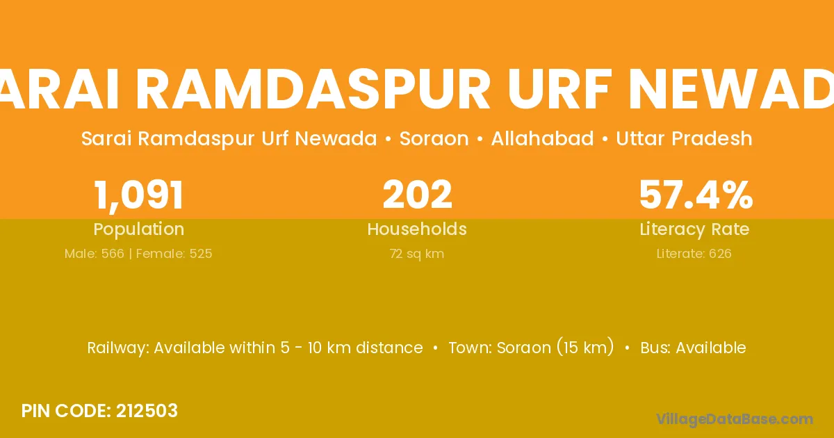 Sarai Ramdaspur Urf Newada village has a total population of 1,091 people, of which 566 are males and 525 are females.