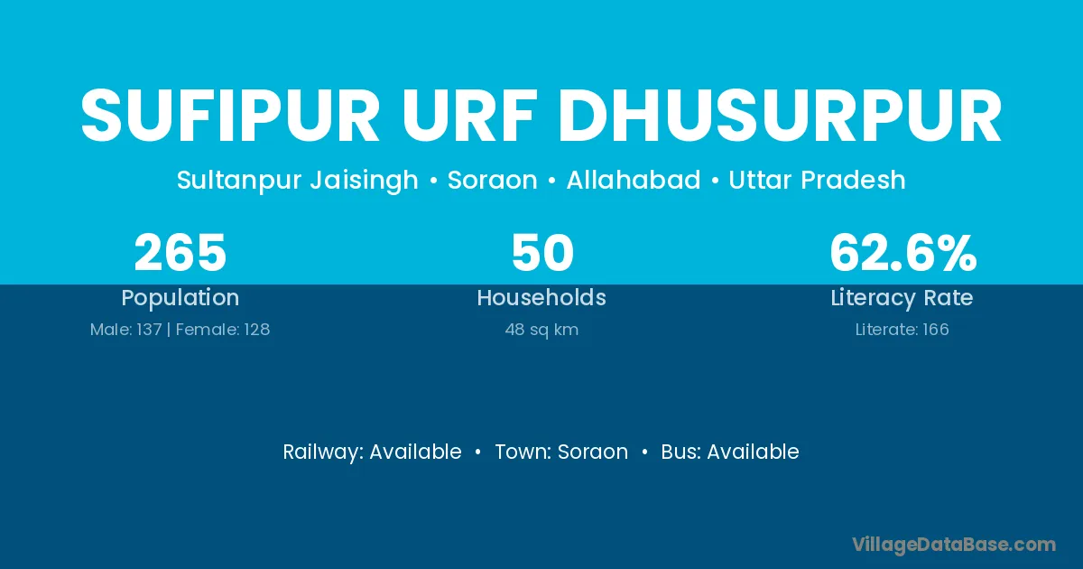 Sufipur Urf Dhusurpur village has a total population of 265 people, of which 137 are males and 128 are females.