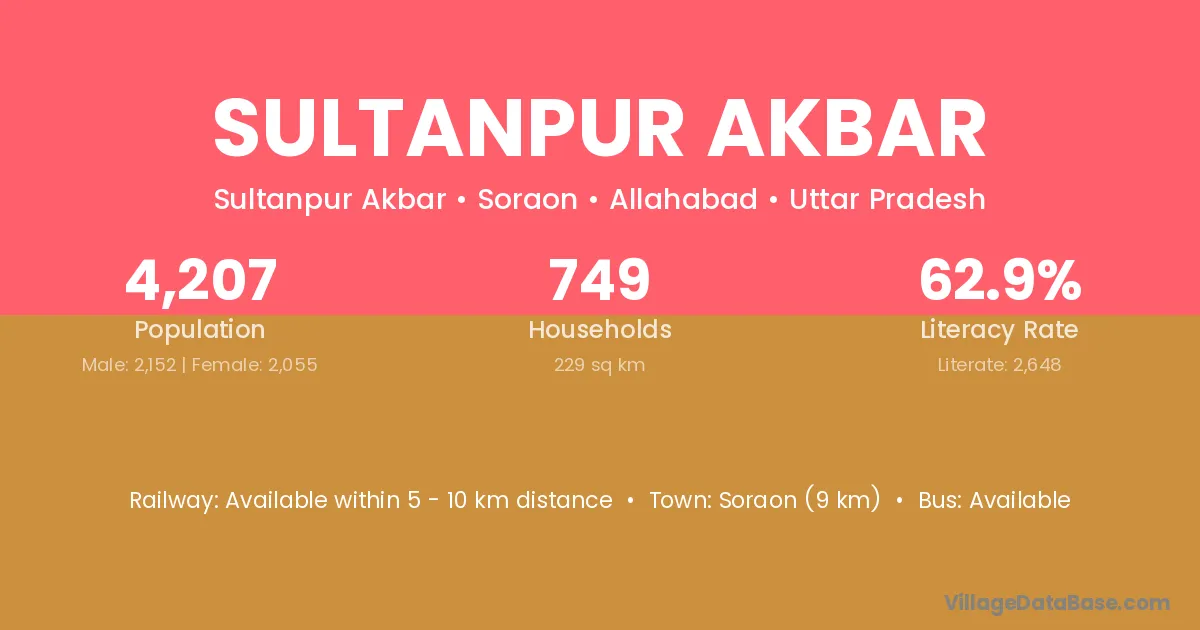 Soraon (9 km) is the nearest town to Sultanpur Akbar village for major economic activities and is located approximately 9 km away.