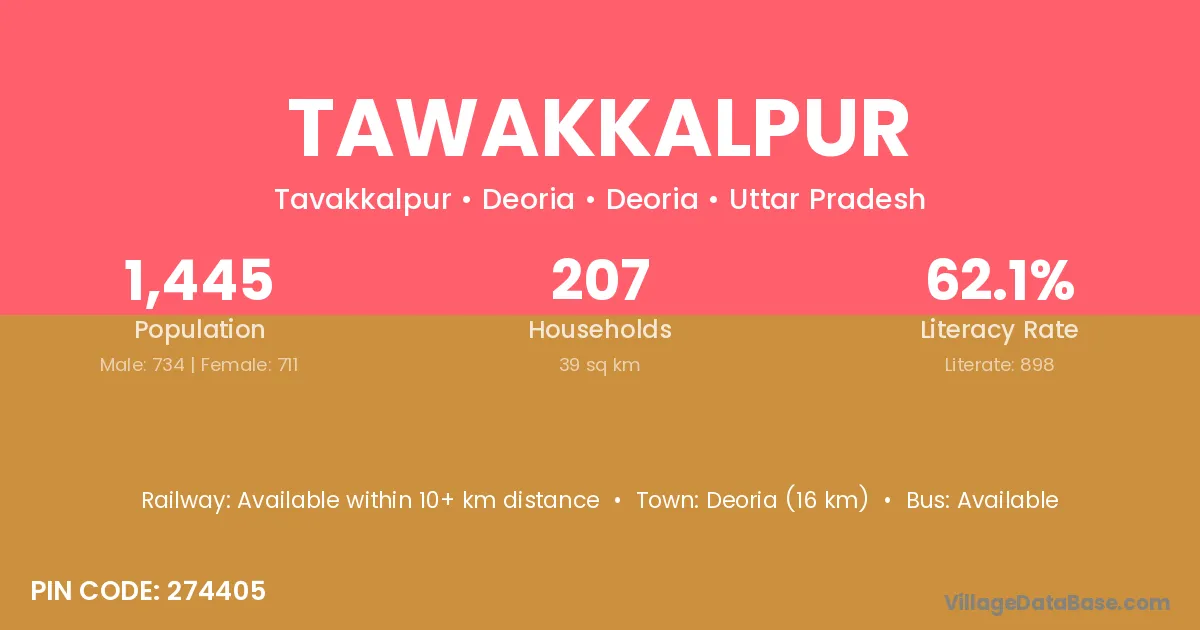 Tawakkalpur village has a total population of 617 people, of which 303 are males and 314 are females.