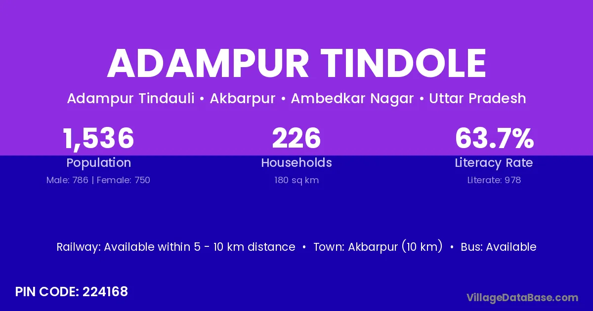 Akbarpur (10 km) is the nearest town to Adampur Tindole village for major economic activities and is located approximately 10 km away.