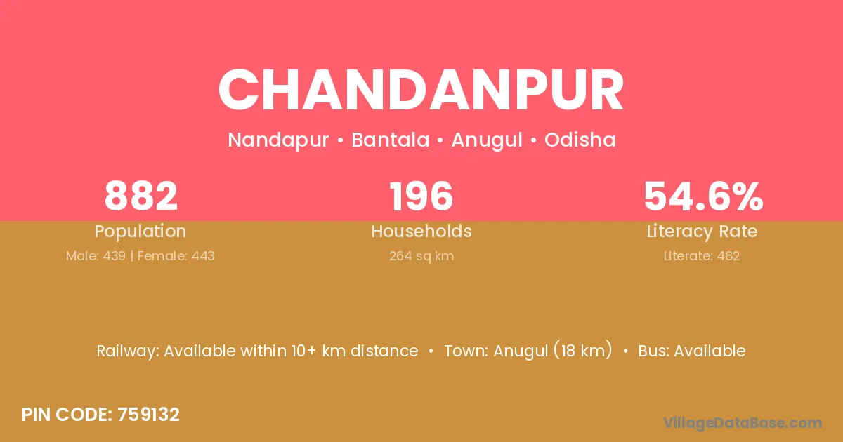 Chandanpur village has a total population of 3,625 people, of which 1,864 are males and 1,761 are females.