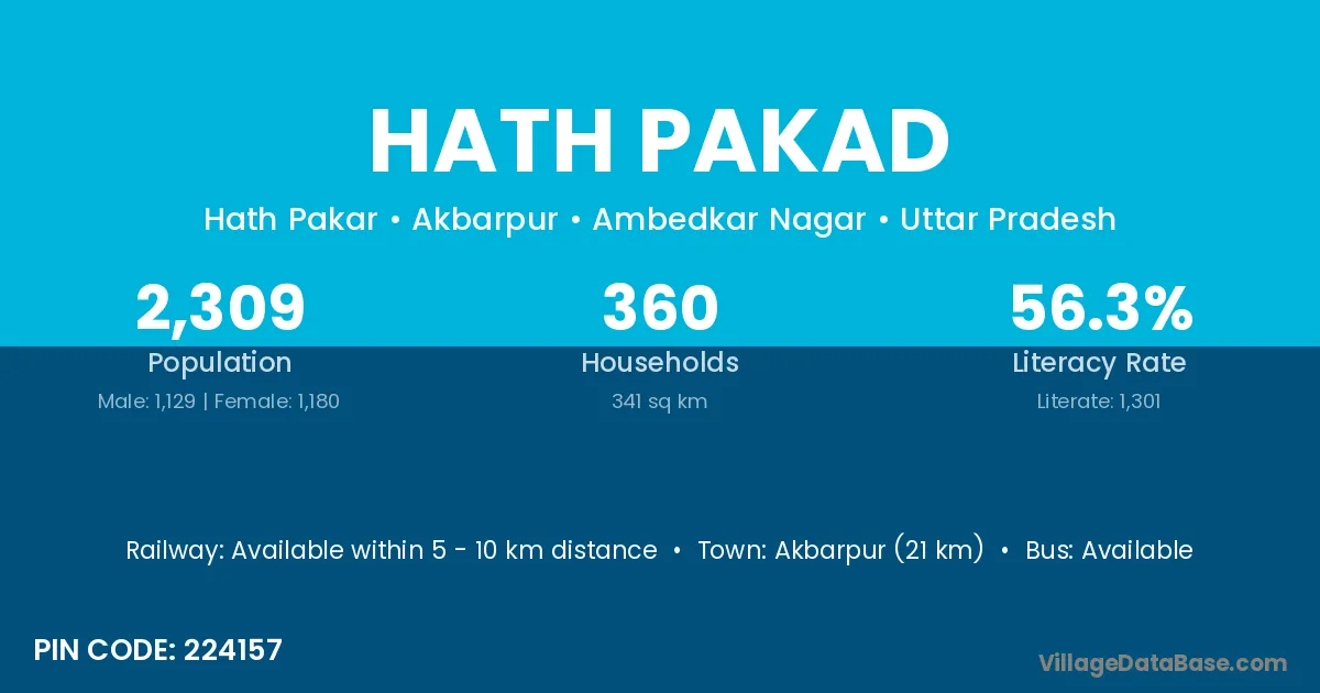 Akbarpur (21 km) is the nearest town to Hath Pakad village for major economic activities and is located approximately 21 km away.