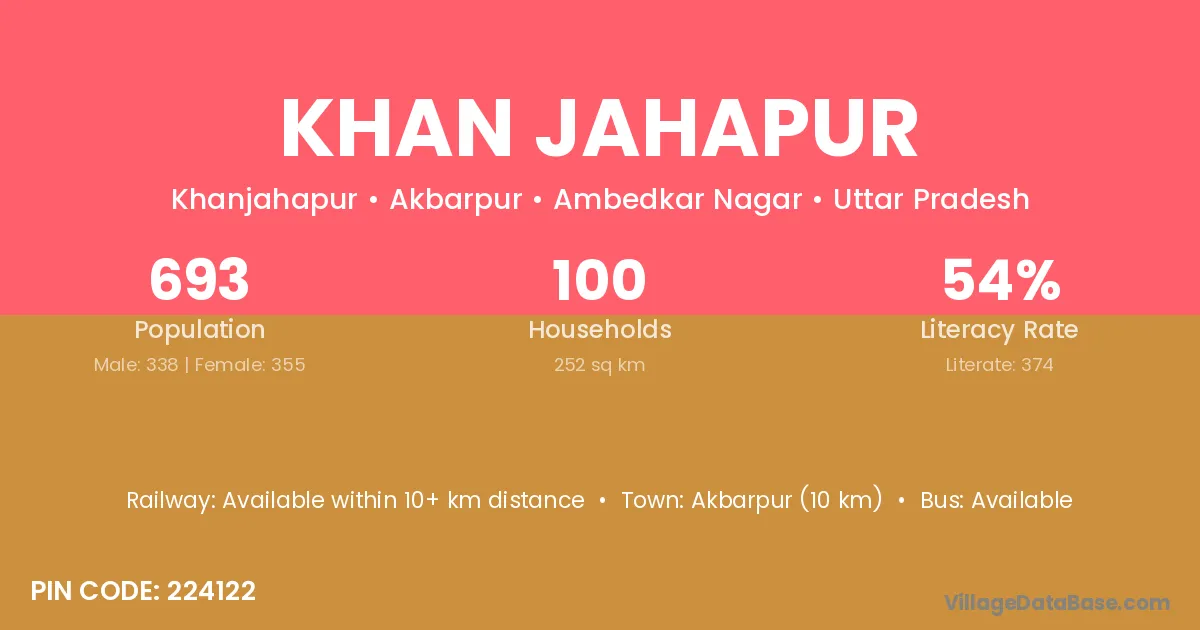 Akbarpur (10 km) is the nearest town to Khan Jahapur village for major economic activities and is located approximately 10 km away.