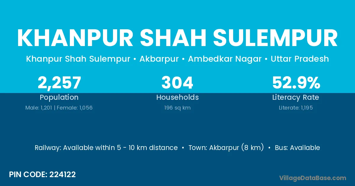 Akbarpur (8 km) is the nearest town to Khanpur Shah Sulempur village for major economic activities and is located approximately 8 km away.