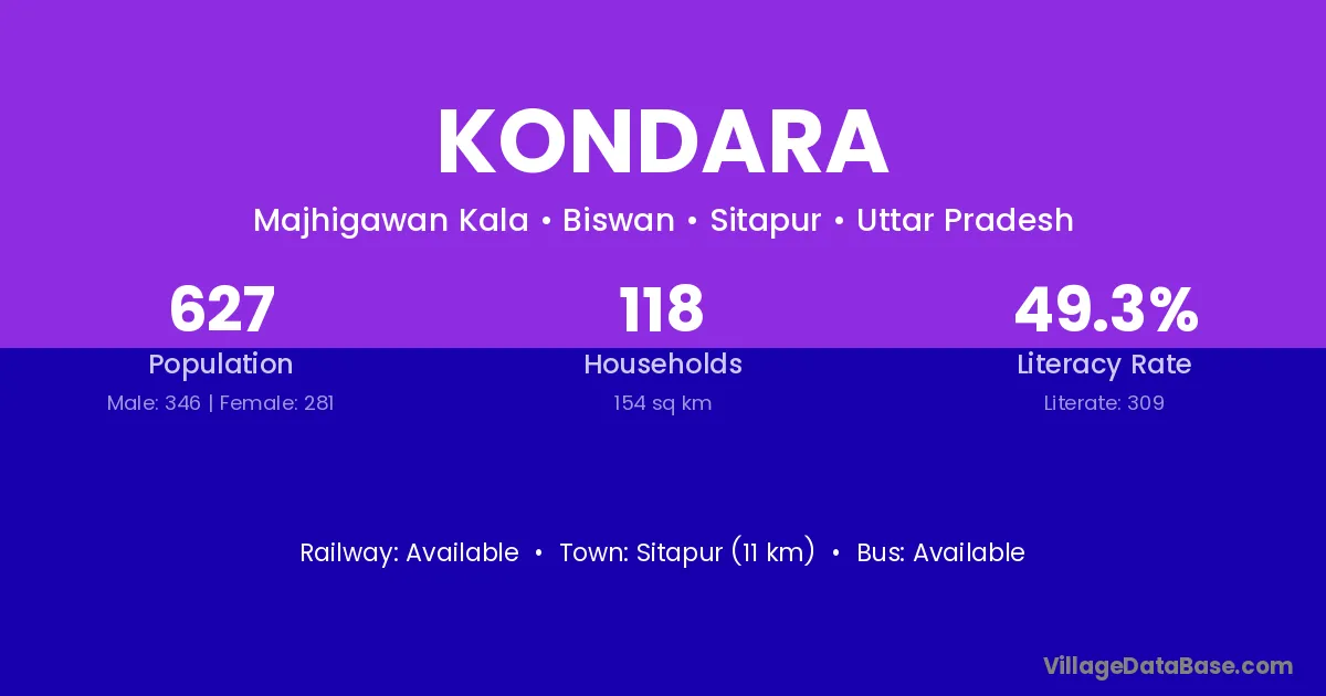 Akbarpur (12 km) is the nearest town to Kondara village for major economic activities and is located approximately 12 km away.