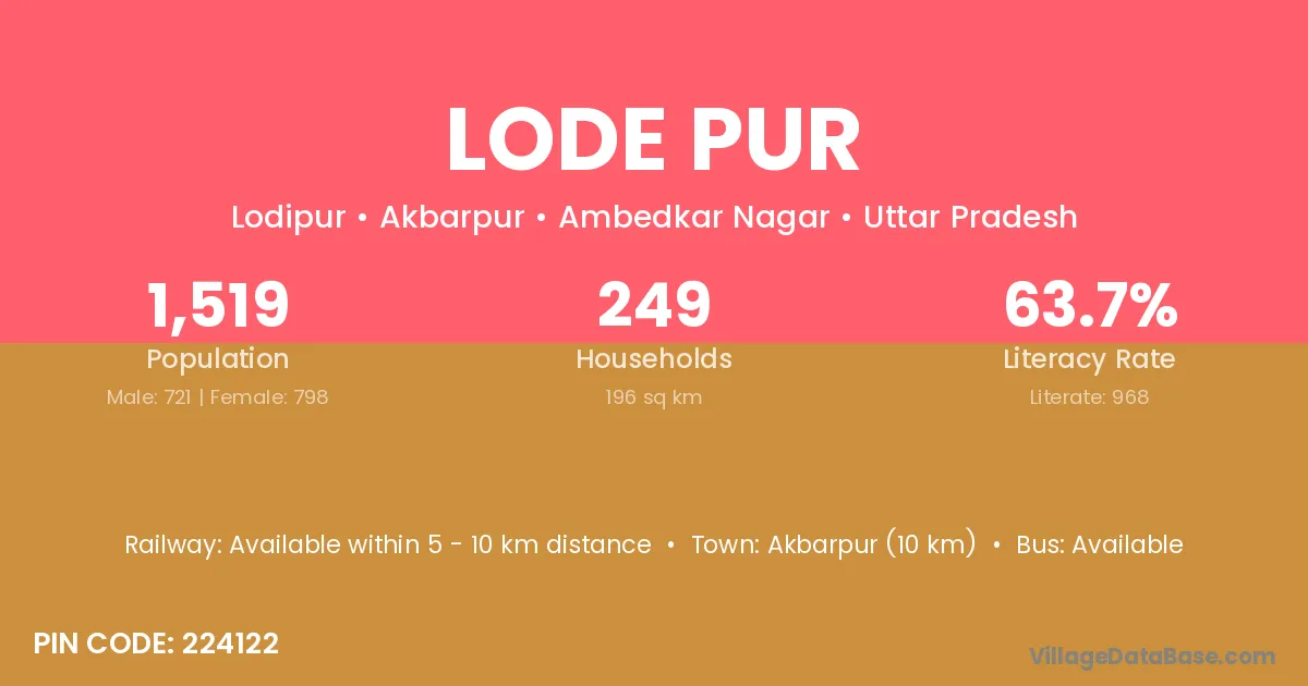Akbarpur (10 km) is the nearest town to Lode Pur village for major economic activities and is located approximately 10 km away.