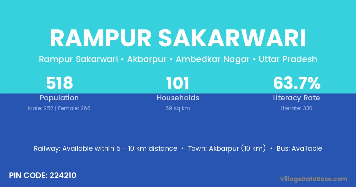 Akbarpur (10 km) is the nearest town to Rampur Sakarwari village for major economic activities and is located approximately 10 km away.