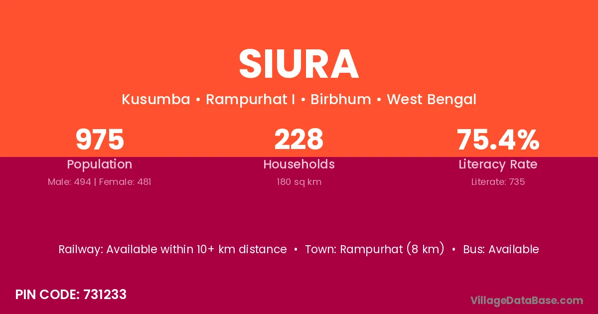 Akbarpur (10 km) is the nearest town to Siura village for major economic activities and is located approximately 10 km away.