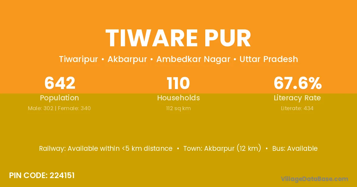 Akbarpur (12 km) is the nearest town to Tiware Pur village for major economic activities and is located approximately 12 km away.