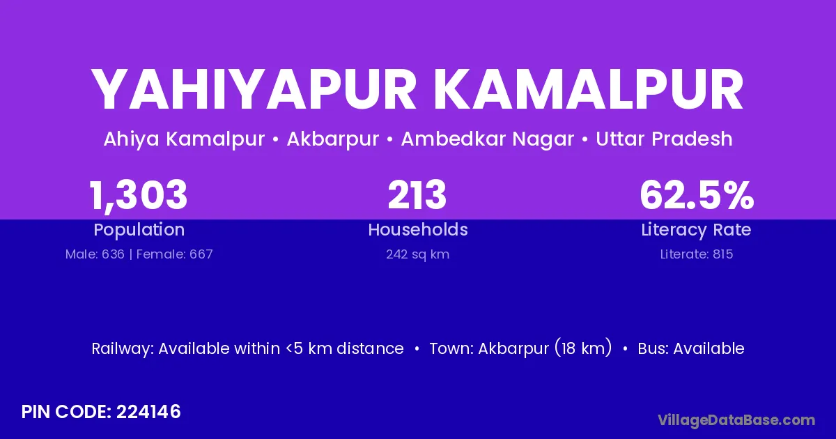 Yahiyapur Kamalpur village has a total population of 1,303 people, of which 636 are males and 667 are females.