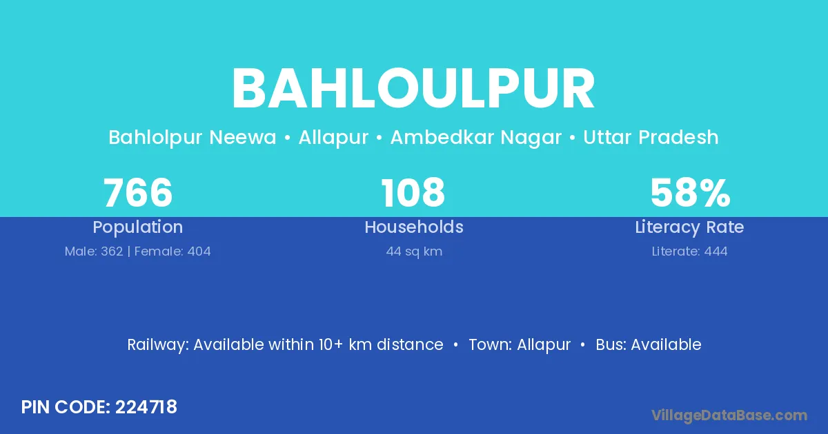 Bahloulpur village has a total population of 766 people, of which 362 are males and 404 are females.