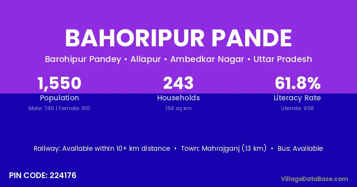 Mahrajganj (13 km) is the nearest town to Bahoripur Pande village for major economic activities and is located approximately 13 km away.