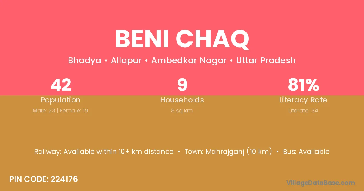 Mahrajganj (10 km) is the nearest town to Beni Chaq village for major economic activities and is located approximately 10 km away.