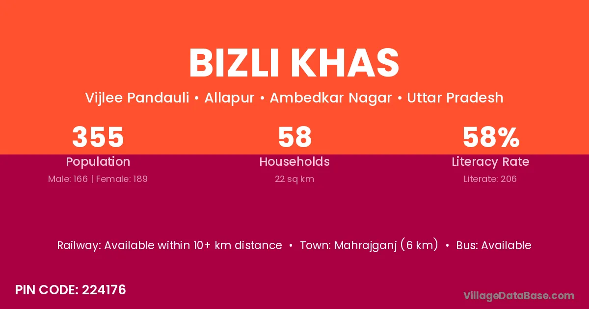 Mahrajganj (6 km) is the nearest town to Bizli Khas village for major economic activities and is located approximately 6 km away.
