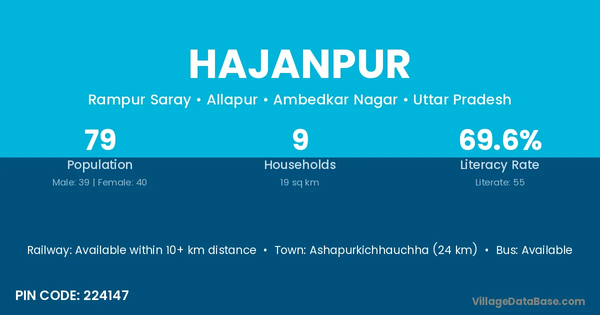 Ashapurkichhauchha (24 km) is the nearest town to Hajanpur village for major economic activities and is located approximately 24 km away.