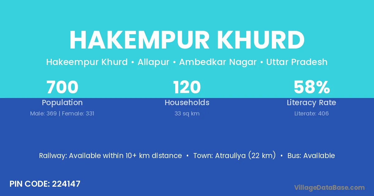 Atrauliya (22 km) is the nearest town to Hakempur Khurd village for major economic activities and is located approximately 22 km away.