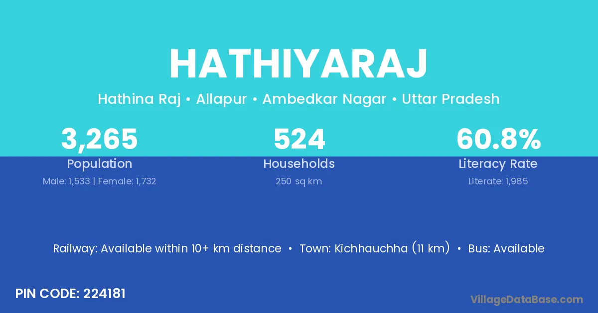 Kichhauchha (11 km) is the nearest town to Hathiyaraj village for major economic activities and is located approximately 11 km away.