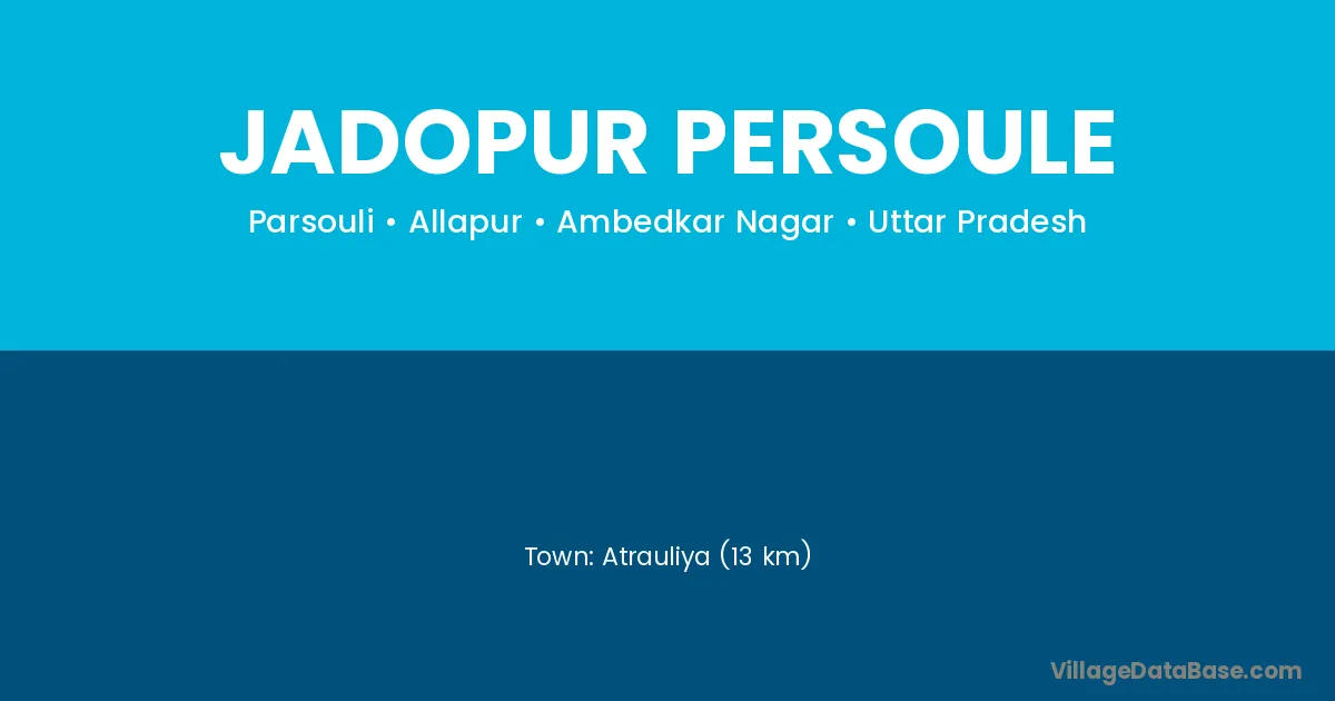 Atrauliya (13 km) is the nearest town to Jadopur Persoule village for major economic activities and is located approximately 13 km away.
