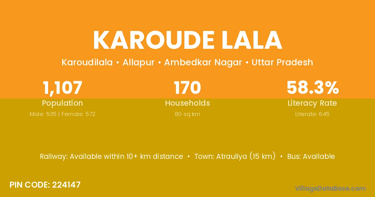 Karoude Lala village has a total population of 1,107 people, of which 535 are males and 572 are females.