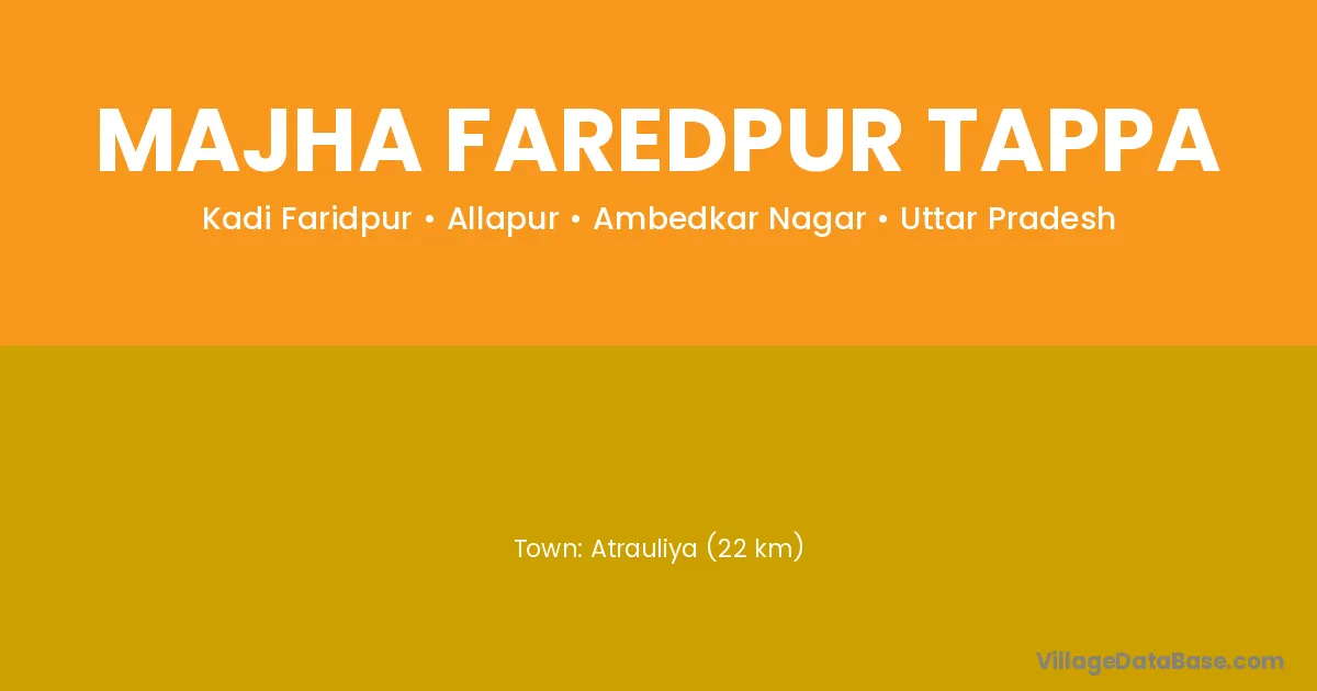 Atrauliya (22 km) is the nearest town to Majha Faredpur Tappa village for major economic activities and is located approximately 22 km away.
