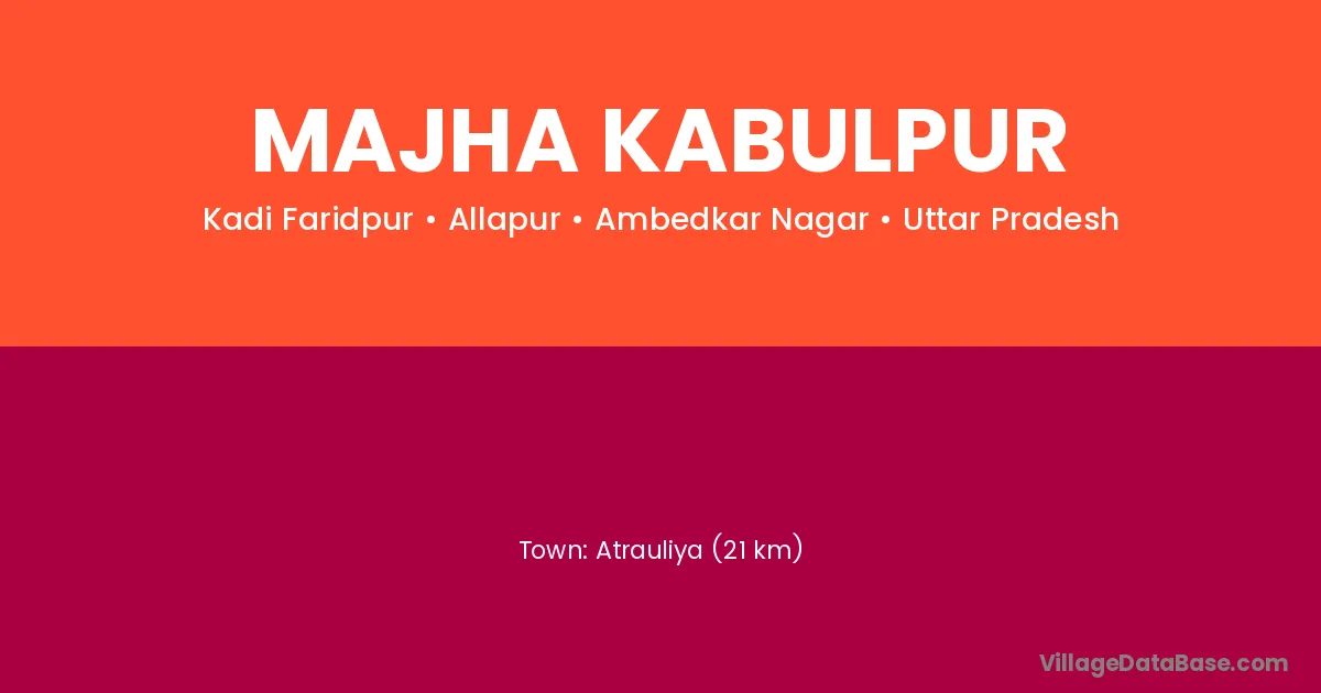 Atrauliya (21 km) is the nearest town to Majha Kabulpur village for major economic activities and is located approximately 21 km away.