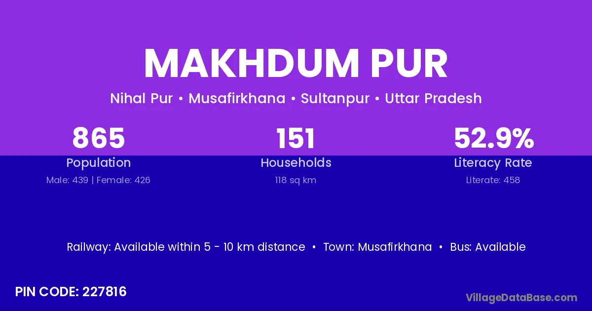 Atrauliya (14 km) is the nearest town to Makhdum Pur village for major economic activities and is located approximately 14 km away.