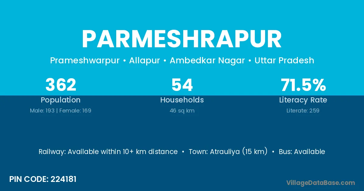 Atrauliya (15 km) is the nearest town to Parmeshrapur village for major economic activities and is located approximately 15 km away.