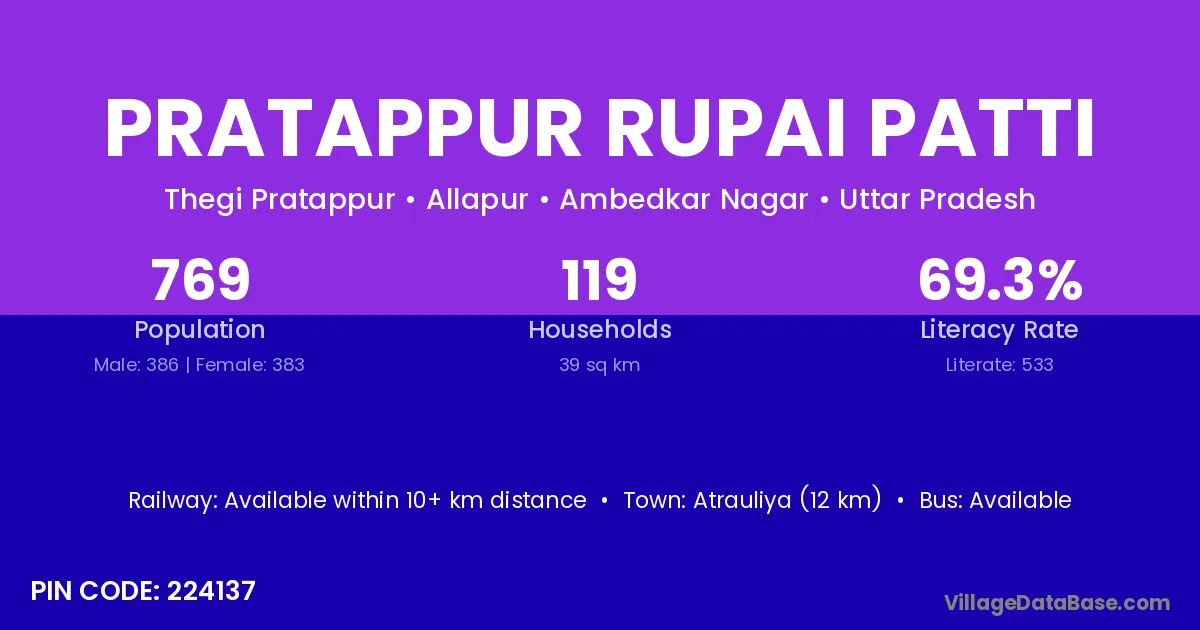 Pratappur Rupai Patti village has a total population of 769 people, of which 386 are males and 383 are females.