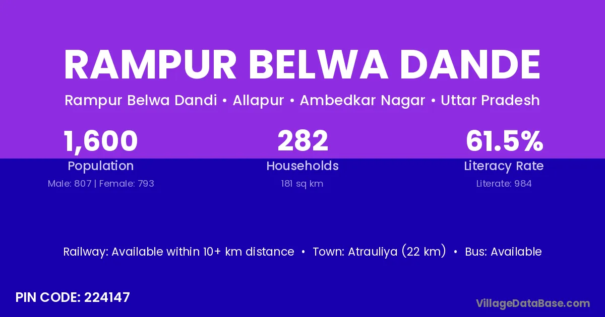 Atrauliya (22 km) is the nearest town to Rampur Belwa Dande village for major economic activities and is located approximately 22 km away.