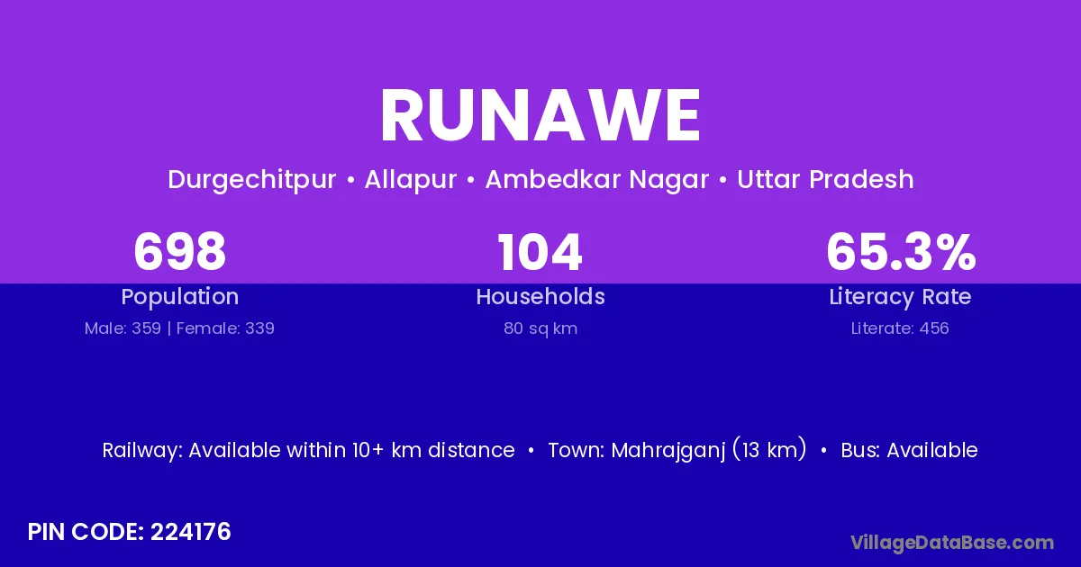 Mahrajganj (13 km) is the nearest town to Runawe village for major economic activities and is located approximately 13 km away.