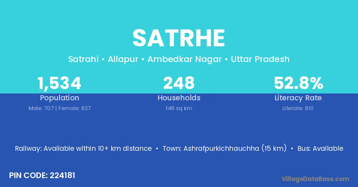 Ashrafpurkichhauchha (15 km) is the nearest town to Satrhe village for major economic activities and is located approximately 15 km away.