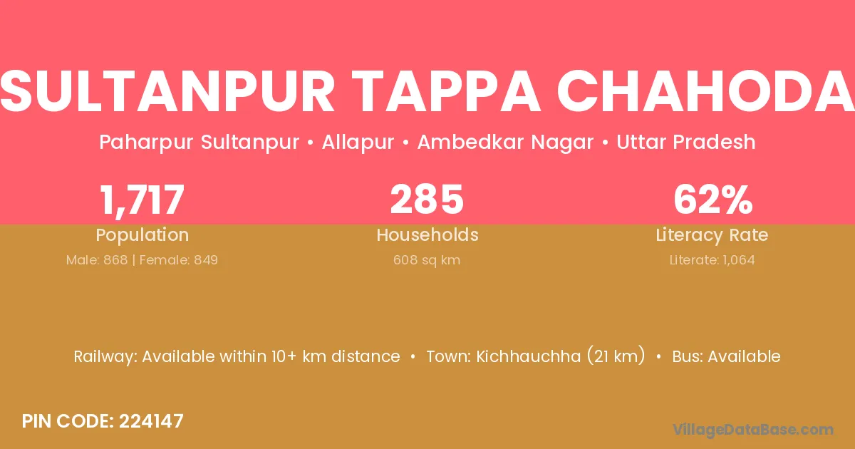 Sultanpur Tappa Chahoda village is located in the Allapur Tehsil of the Ambedkar Nagar district in Uttar Pradesh .
