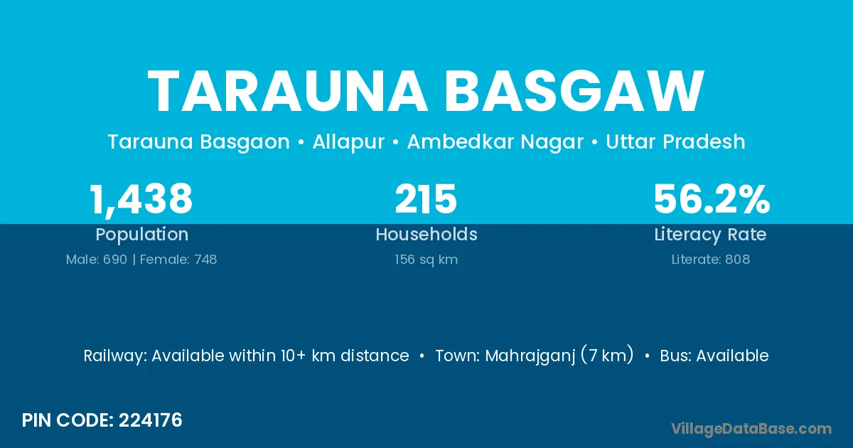 Mahrajganj (7 km) is the nearest town to Tarauna Basgaw village for major economic activities and is located approximately 7 km away.