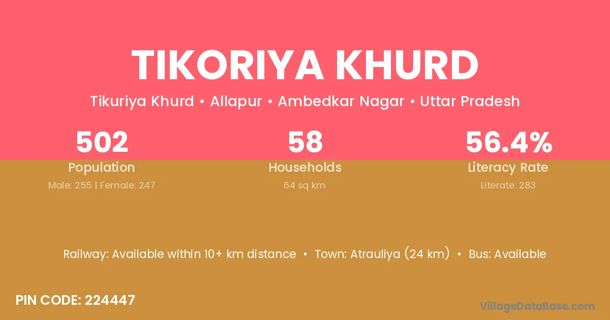 Tikoriya Khurd village has a total population of 502 people, of which 255 are males and 247 are females.