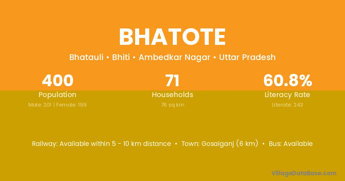 Gosaiganj (6 km) is the nearest town to Bhatote village for major economic activities and is located approximately 6 km away.