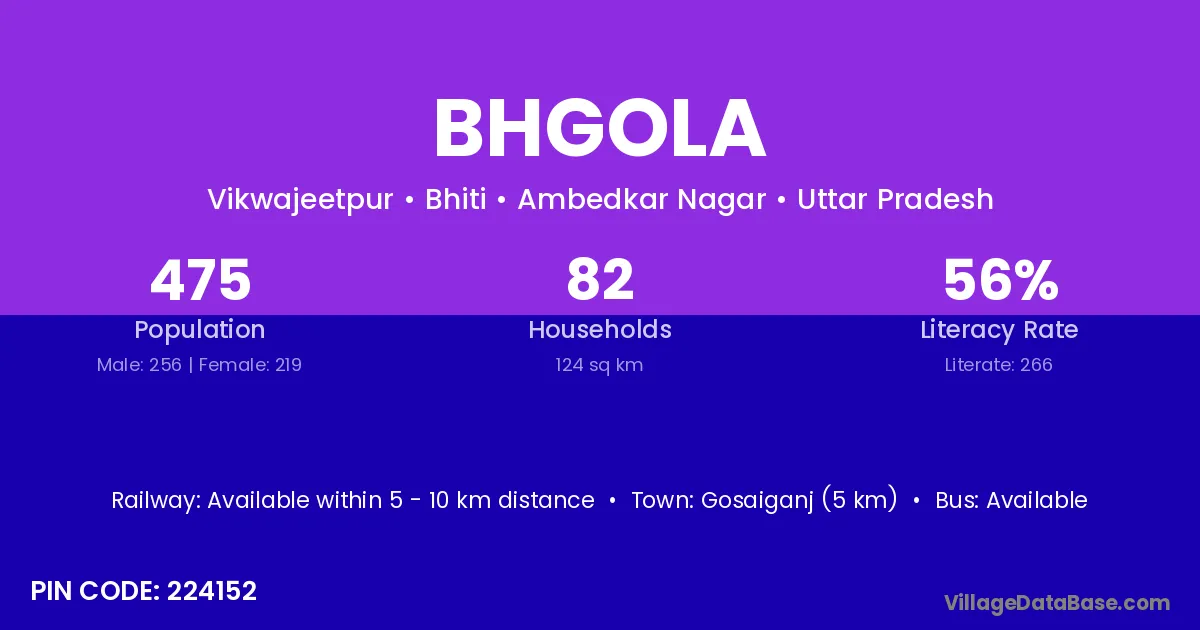 Bhgola village is located in the Bhiti Tehsil of the Ambedkar Nagar district in Uttar Pradesh .