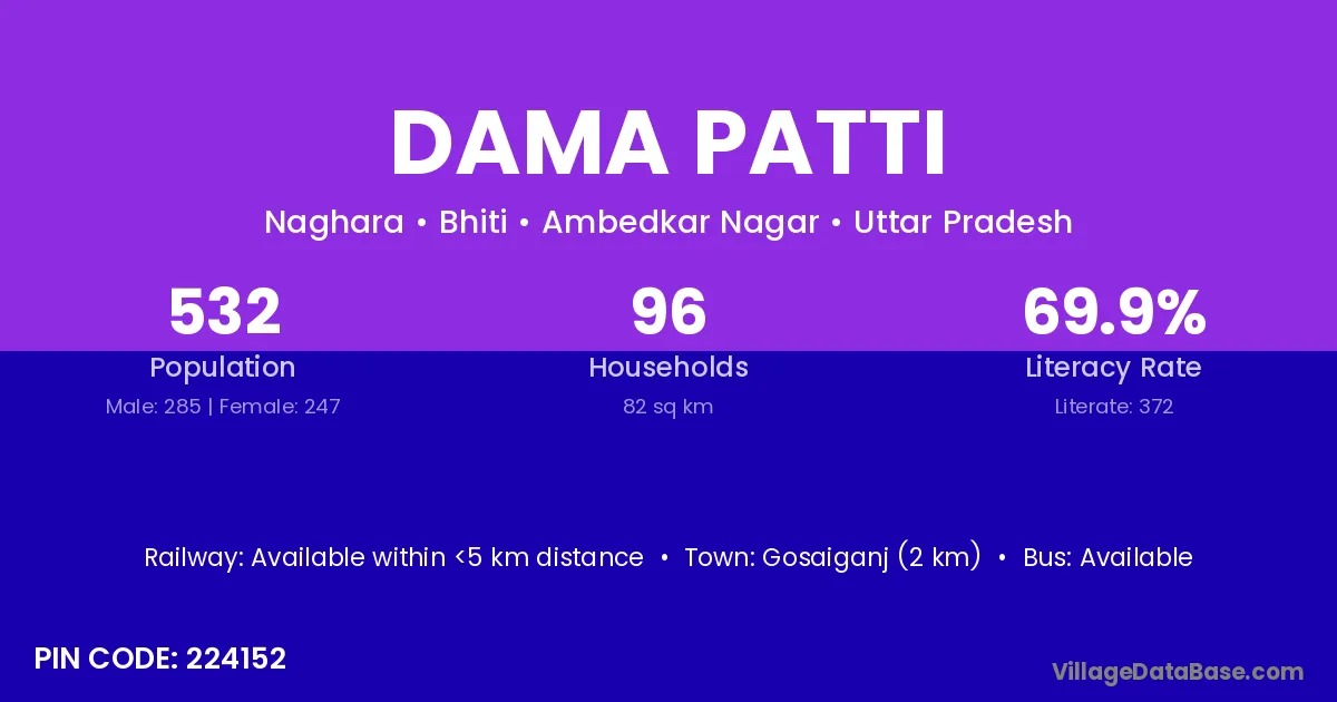 According to Census 2011 information, the village code of Dama Patti village is 224152.