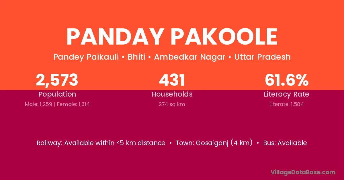 Gosaiganj (4 km) is the nearest town to Panday Pakoole village for major economic activities and is located approximately 4 km away.
