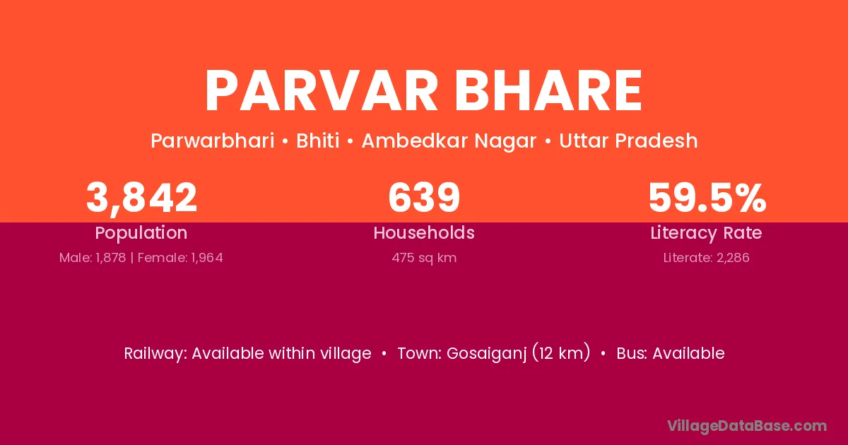 Gosaiganj (12 km) is the nearest town to Parvar Bhare village for major economic activities and is located approximately 12 km away.