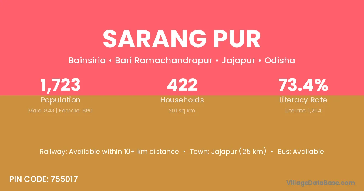 Akbarpur (17 km) is the nearest town to Sarang Pur village for major economic activities and is located approximately 17 km away.